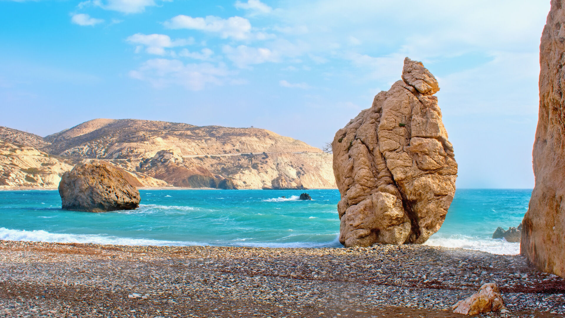 Wrażenia krajobrazowe, w szczególności klif Cape Aspro i plaża Afrodyty, widoki plaż, krajobraz wybrzeża i góry Cypru